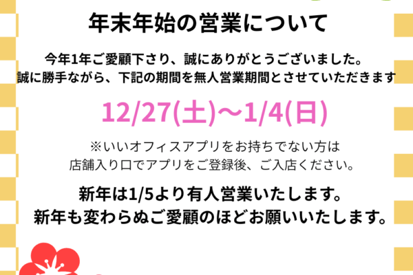 お得な情報や耳寄りの情報を発信! オアシスからご案内やイベントのお知らせなど発信しております。 2025.12.04 お知らせ エアコン清掃実施のお知らせ 2025.12.02 お知らせ 年末年始無人営業のお知らせ 2025.11.19 お知らせ オープンスペースご利用時の衛生面へのご協力のお願い 2025.07.29 お知らせ お盆期間中の営業日と有人受付時間短縮のお知らせ 2025.06.20 お知らせ 【料金改定および座席レイアウト改善のお知らせ】 2025.06.18 お知らせ いいオフィスシステムメンテナンスのお知らせ 2025.04.21 お知らせ 断水工事のお知らせ 2025.04.15 お知らせ GW期間中の営業時間について 2024.12.18 お知らせ 年末年始無人営業のお知らせ 2024.08.08 お知らせ お盆期間も通常営業いたします! 2024.07.23 お知らせ ネットワーク増強工事のお知らせ 2024.06.07 お知らせ 停電のお知らせ 1 2 3 4 5