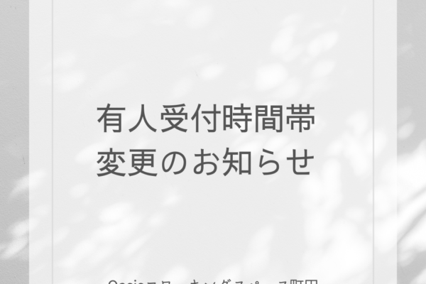 お得な情報や耳寄りの情報を発信! オアシスからご案内やイベントのお知らせなど発信しております。 2026.03.06 お知らせ 有人受付時間帯変更のお知らせ 2026.02.27 お知らせ 有人時間短縮営業のお知らせ 2026.02.20 お知らせ 日経オフィスパス利用終了のお知らせ 2026.02.13 お知らせ 消防設備点検のお知らせ 2026.01.08 お知らせ オープンスペースに大型モニターを3台新設しました! 2026.01.06 お知らせ 新年のご挨拶 2025.12.05 お知らせ 年末年始無人営業のお知らせ 2025.12.04 お知らせ エアコン清掃実施のお知らせ 2025.11.19 お知らせ オープンスペースご利用時の衛生面へのご協力のお願い 2025.07.29 お知らせ お盆期間中の営業日と有人受付時間短縮のお知らせ 2025.06.20 お知らせ 【料金改定および座席レイアウト改善のお知らせ】 2025.06.18 お知らせ いいオフィスシステムメンテナンスのお知らせ 1 2 3 4 5 6